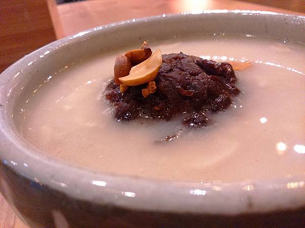 甜點套餐中的主角,迷米迷的花生湯,中間加入一球紅豆泥,別擔心,一點也不會太甜,剛剛好的甜度,非常好吃