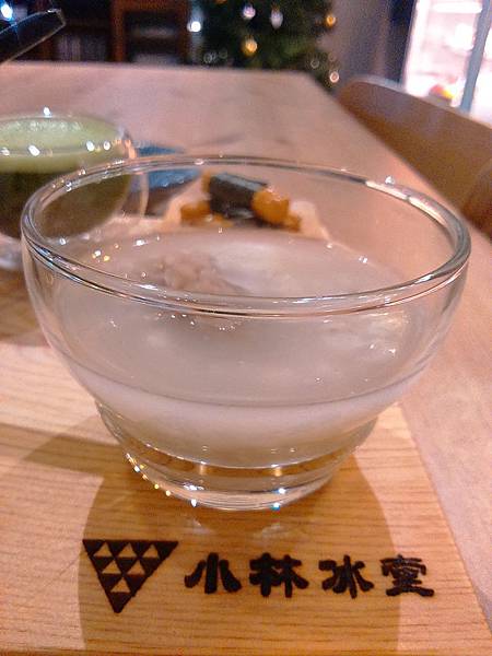 登登~~~~~冬季限定甜品,Lynn點的是紅豆抺茶花生xxx,對不起,光顧著吃,名字忘光光,總共好像有四五種口味,偏好抹茶的緣故選了這個