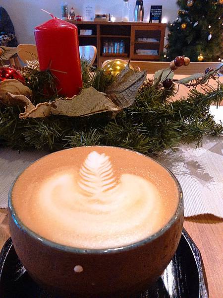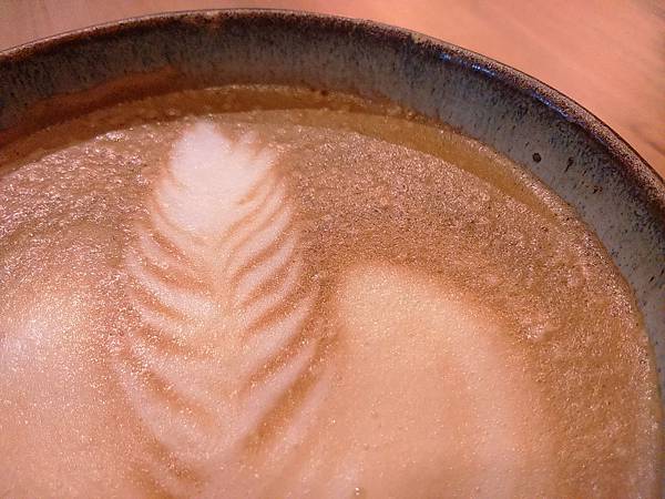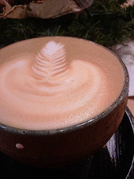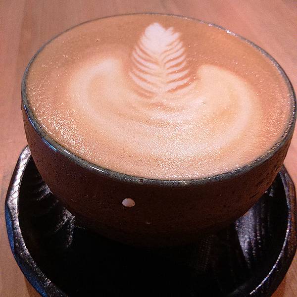 吃完抹茶口味有點意猶未盡,本想再嚐嚐另一種紅石榴口味,聽到一位帶著小朋友的媽咪買下最後二隻時,嗚....無緣了,可是還很想吃耶,那....就加點杯咖啡好了,焦糖海鹽拿鐵,端上桌時真是驚艷,好像精品的一杯咖啡,杯子質感極為精緻,黑色陶杯,帶著一股高雅的氣息,拉花也很美,這杯咖啡光是外型就很讚了,喝了一口更是驚喜,哇,加了海鹽竟如此美味,很不尋常的味道,太棒了